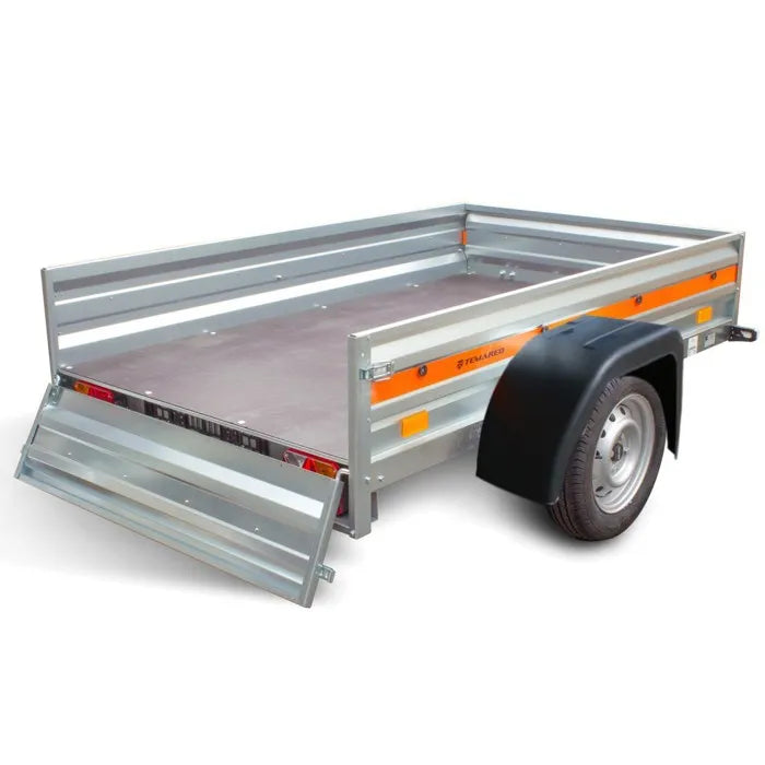 Options disponibles : réhausses de ridelles, roue jockey, antivol. Avec un poids de 156 kg, elle est idéale pour les déménagements, travaux ou loisirs.